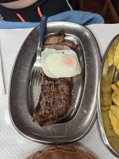 Read moreSe realizó un encargo para comer antes de las 14:30 y el servicio se retrasó por la falta de organización y servicio lento. Las camareras son agradables y la cocina lenta y sacando platos de bacalao quemados mayormente. El pan fue escaso un trocito por persona, insuficiente. La calidad del producto tanto carne, pescado y patatas buena. Se comió filete de ternera con huevo, churrasco de ternera con patatas, y bacalao para dos. Determinamos no tomar ni postre ni café por la inoperancia del servicio. Se puede mejorar. Precio 66,50€ para 4 personas. Gracias por las aceitunas insípidas. Mi puntuación estaría entre 3 y 2 estrellas pero hemos decidido finalmente lo que se...