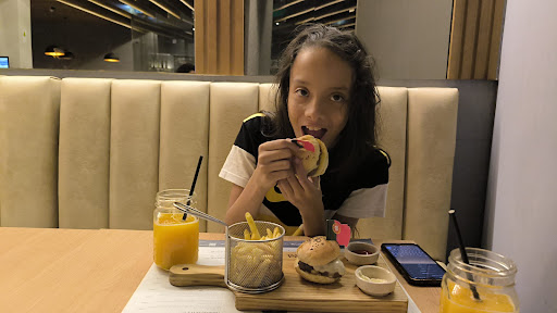 We stopped in to try burgers. First the service was excellent and the cafe a has a great atmosphere. The smash burger though was a regular patty was not a “smashed burger” it was exactly like the burger with egg we ordered. The cheese seemed to be a processed slice and although that’s okay the burgers would be greatly elevated by using a cheddar or any other cheese in its place. The buns tasted like they were just out of the package buns, fresh but average. The burger is what I would expect from a pub burger not a 9€ burger. With many bakeries in the area for that price I would expect fresh baked buns. I rate this tavern as four stars because of atmosphere and service but only 3 stars for the food as the burger is only a small step up from fast food. I would say the fry’s...