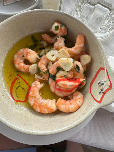 If you're a fan of prawn guts with a full load of excrement, this is the restaurant for you. Even the large amount of garlic didn't kill the flavours. The shrimp guts filled the mouth and caressed the taste buds providing a culinary experience for the most discerning coprophilia fans. Just one prawn was enough to satiate the palate with this distinctive flavour and effectively satisfy the craving for hunger for a very long time. When I made my feelings known to the waitress, she billed the full amount without hesitation (photo attached). I guess she felt honoured by the customer's opinion and proudly cash the full amount due without even offering to negotiate. This restaurant can confidently compete with the restaurant of Mr. and Mrs. Sheldon J. Plankton and Karen Plankton called "Chum Bucket" located in Bikini Bottom ( opposite Mr. Eugene H. Krabs' most famous, respected and loved restaurant called "Krusty Krab" where Sir SpongeBob SquarePants is the chef). I strongly discourage normal people from trying to verify on their own palate my words. I enclose photos of the shrimp elements that will probably make this establishment famous on many continents and for a long time to come. I vomited with glee and delight at the taste qualities of this dish with a smile on my lips and imagined myself doing it to the chef's cooking cap, and later, in gratitude for his work, putting it on his head and hanging a tyre company star made of beetroot on his proudly...