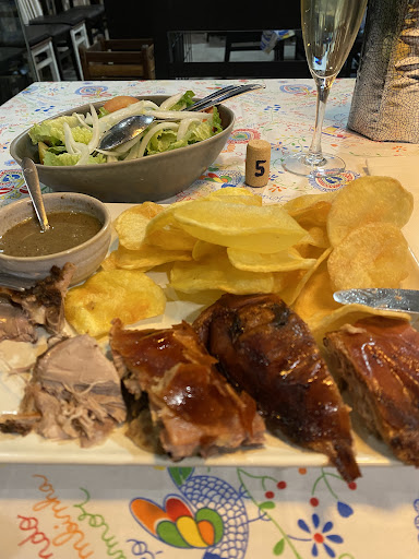 Há meses atrás disse em outra conta "Vou voltar a este Cantinho uma e outra vez, e vou levar amigos comigo. (...) Obrigado, Rui, até breve. Cumprindo o voto aqui feito, no final de mais uma caminhada aqui perto, telefono ao Rui para me reservar uma mesa a uma 6ª à noite. Contando deliciar-me com uma bela posta, diz-me ele quando lá chego: "Hoje vais comer leitão!" Sempre que vou a um restaurante e o dono me diz o que vou comer, é um atestado de confiança que me é passado e que nunca me desiludiu. E, uma vez mais, o pressuposto confirmou-se. Acompanhado de uma salada, digamos, banal, as batatas fritas em rodelas são estaladiças como devem ser, e o leitão tem TUDO o que se pede de um leitão: carne saborosa, tenra e suculenta a contrastar com uma pele dura, que "faz barulho", crocante e que compõe a paleta de texturas que se impõe, feito em forno de lenha. Para complementar o prato, foi-me proposto o espumante da casa. Não tirei foto da garrafa porque veio envolvida por uma manga gelada e também não faz falta (a foto); deve ser espumante "o muito bom" que me surpreendeu pela positiva. Cuidado com o molho do leitão; diz-me o Rui que não leva qualquer tipo de piri-piri, mas o "estalo" picante pode ser um pouco invasivo para os palatos mais sensíveis. Pessoalmente, gosto de molhos intensos, picante e memoráveis à semelhança de tudo o que para mim vale a pena nesta vida, e este, estava no ponto. Concluindo, e tive oportunidade de o dizer, olhos nos olhos, a quem dá a cara deste restaurante, os ingrediente principais de uma boa refeição são a simpatia de quem nos recebe, a qualidade dos ingredientes e o amor que esta empresa familiar dedica à confecção das refeições com que nos brinda. Grande abraço Rui, vou voltar... mais vezes e com amigos. Jorge Curto...