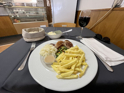 Optámos todos pela vitela, recomendada como uma das especialidades da casa, e foi uma escolha certeira. A carne estava extremamente tenra e saborosa, cozinhada no ponto certo, com aquele paladar caseiro que já vai sendo difícil de encontrar. Os acompanhamentos — batatas douradas, arroz solto e legumes bem temperados — completaram o prato na perfeição.