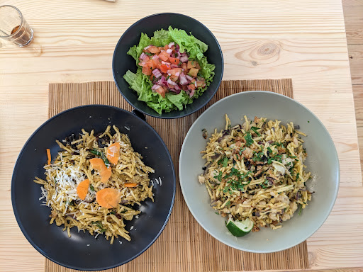 We happened in for lunch after the fruit and veggie market. The waitress was great and helped us translate the menu into English and explained their dishes. We chose à Brás, a local dish in two different flavors, one made with asparagus, mushrooms and onions and spices; the other with onions, hake and spices. Both were delicious! We will definitely be back to try their Mexican dishes. They also have numerous burgers and many other items on the menu, which I think has recently changed. It's a little hard to find due to minimal signage, but they are located directly at the top of the...