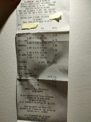 Read morePatrons beware: I have frequented this establishment for the past 3-years and for the most part I have always enjoyed my meals here. What I don’t enjoy is being taken advantage of financially for no other reason than my inability to be fluent in Portuguese. The first time I took the overcharging issue up with the owner, but most recently a friend from the UK was treating me to lunch. We ordered the daily special and when his meal came, I was not familiar with it as the usual plate of the day. I asked if it was and in fact it was advertised as such. When we went to pay we were charged DOUBLE what was expected for our lunch. I did not understand the explanation why? I find this business practice as dishonest and will no longer give them my business. Intentionally overcharging foreigners for meals or services should be frowned upon and illegal....
