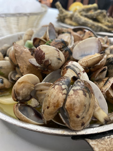 Viele Besucher von Foz do Arelho fahren auf dem Weg in die beliebte Küstenstadt durch Nadadouro, ohne zu wissen, daß sich in diesem touristisch reizlosen Dörfchen ein bemerkenswert authentisches Restaurant für regionale Küche befindet. Es liegt so versteckt in einer Seitenstraße im Dorfkern, daß wir es ohne die Hilfe von Google-Maps nicht gefunden hätten. Direkt am Restaurant befindet sich ein Parkplatz. Die Einrichtung entspricht einem typisch portugiesischem Landrestaurant, wie sie in dieser Region hundertfach anzutreffen sind. Das relativ moderne Gebäude verfügt über einen doppelten Eingang. Auf der rechten Seite befindet sich eine Dorfkneipe mit Bar, Café und Terrasse. Links ist das Restaurant mit rustikalem Speisesaal. Die Einrichtung wird durch den obligatorischen Flatscreen, große Getränke- und Eiskühlschränke sowie eine Theke gefüllt mit Obst und hausgemachten Desserts ergänzt. Sonntagsmittags scheint sich hier das halbe Dorf zum traditionellen Lunch zu treffen. Die angebotenen Speisen bestehen aus regionalen Klassikern, die, wie in Portugal üblich, von adretten Hausfrauen generationsübergreifend gekocht werden. Die Speisen werden in sehr großen Portionen zu günstigen Preisen angeboten. Es ist üblich, sich eine Portion zum Teilen zu bestellen, falls auf der Speisenkarte keine halben Portionen ( Meja Dose) angeboten werden. Was ist also die kulinarische Besonderheit dieses typischen Dorfrestaurants? Es sind die frischen Aale und Ameijoas aus der nahen Lagune von Obidos, die hier angeboten werden! Eindeutig die Besten, die wir nach zahlreichen Besuchen in der Region probiert haben. Die Aale werden frittiert mehr oder weniger das ganze Jahr über angeboten. Den Aaleintopf (Ensopado Enguias) gibt es am Wochenende und auf Vorbestellung. Eine Portion für 25,-Euro reicht, um 2 Personen reichlich mit wunderbar frischem zarten Aal zu versorgen. Besonders dann, wenn sie sich als Vorspeise eine Portion Ameijoas a Bulhão Pato geteilt haben. Die frischen Venusmuscheln aus der Lagune schmecken ungleich aromatischer als die häufig verwendeten und viel billigeren TK-Muscheln aus Vietnam. Der Aal-Eintopf mit frischen Aal-Stücken wird in einem Tomaten-Zwiebel-Gemüsesud mit Knoblauch und Kartoffeln auf einem Bett von geröstetem Brot garniert mit Venusmuscheln und Garnelen serviert. Das Fleisch der Obidos-Aale ist unglaublich zart und aromatisch. Ich kann mich nicht erinnern, jemals zuvor einen wohlschmeckenderen Aal genossen zu haben. Für Freunde von fangfrischem Aal ist das Pátio dos Amigos eine Topp-Empfehlung - auch wegen der herzlichen Gastfreundlichkeit, die der Service über Sprachbarrieren hinweg zeigt. Bezahlen können Sie ausschließlich mit portugiesischen Bankkarten...