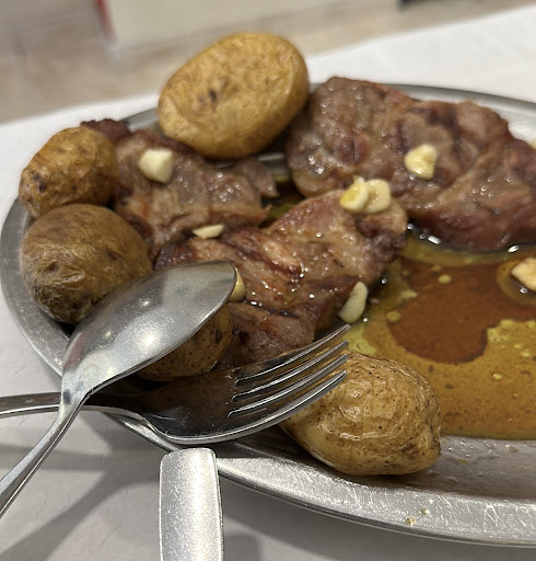We had 2 of the bifes a rotunda which was grilled beef with fries and rice and shared them. It was plenty of food for the 4 of us..we also had 1 beer and 2 cans of sumol + 1 small bottle of water and spent about €45.