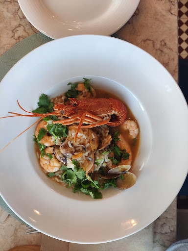 The menu is very diversified, focusing on fresh seafood. I ordered grilled octopus and my friend ordered the mixed seafood rice dish. We enjoyed nibbling on the olives and bread (which came with a small bowl of a seafood spread that was excellent). The restaurant began to fill up quickly at around 20.00. Our food was absolutely delicious. If I return I will definitely order the dish my friend had - it included a small lobster, fresh shrimp (perfectly cleaned!), and other seafood. My octopus was deliciously prepared, but his was the star.