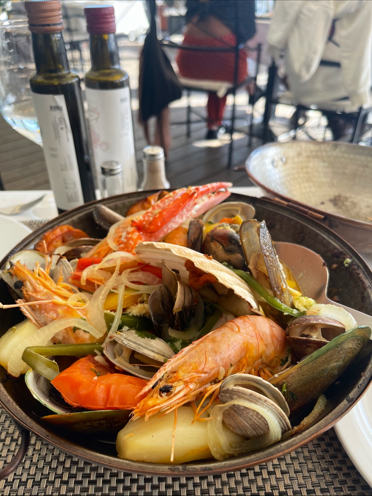 The incredibly rich seafood stock with a perfect amount of saffron and seasoning. I've found a lot of the meals I've tried here to be underflavoured but I did not need to add anything to the flavor. The seafood flavors were incredible and you really could taste and see the bounty of the sea in this dish.