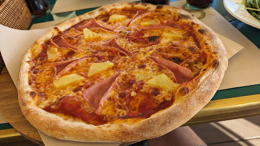 We started with cola zero served in glass bottles, a choice appreciated by enthusiasts. However, the enthusiasm waned when our main dishes arrived. As a seasoned pizza chef, I could tell that my pizza hawaii was not prepared on traditional stones but rather in a pizza pan. This resulted in an overly thin pizza, which, combined with the pan, led to a hard, crispy bottom. The dough itself lacked flavor and character, leaving much to be desired in terms of authenticity and taste.