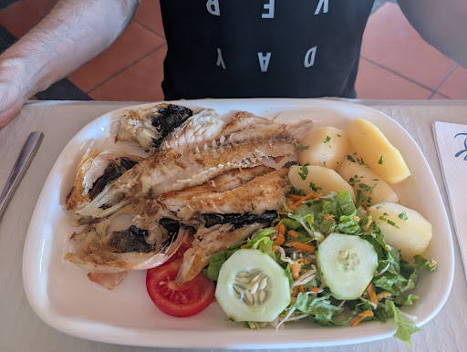 Read moreVery friendly and helpful staff, very good food. Recommend to let the staff (maybe the dessert cook?) show and explain the dessert options. Sao Jorge cheese pudding is wonderfully weird, strong, salty cheese taste on bottom and flan-like taste on top. Recommend if you are adventurous in your dessert choice. We also had the shrimp skewer (yummy, garlicky marinade) and the local pork roast 🤤 Also recommend the Rola Pipa white wine if you like mineral wines...