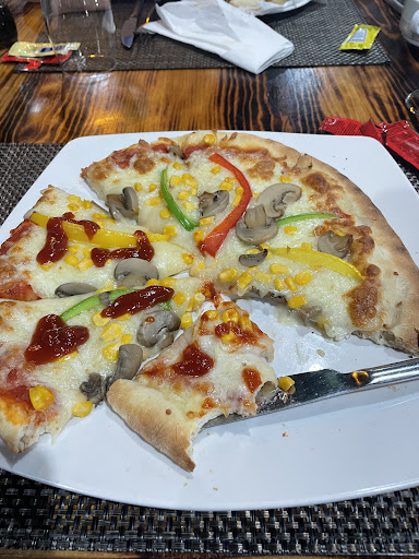 I ordered their so-called signature meat skewer. It was completely overcooked, tough, and dry — absolutely flavorless. No seasoning, no care in preparation, just a chewy, overdone chunk of meat on a stick. My companion tried a pizza, which was even worse: disgustingly greasy, soggy crust, and toppings that tasted like they came straight from a tin can. Nothing fresh, nothing enjoyable. The tomato sauce was acidic and watery, and the whole thing was basically inedible.