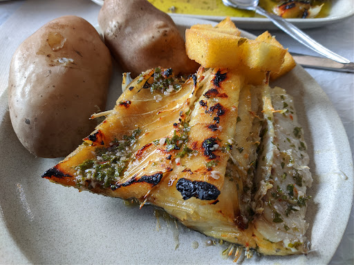 Pedimos frango no churrasco e o famoso bacalhau na brasa. Bem, o frango veio seco e sem sabor por ter sido aquecido e não feito na hora como seria de esperar. O bacalhau é pré cozido, e na hora de servir passam pelo grelhador para "enganar" o cliente. O interior estava meio frio. Ou seja, ou as pessoas que comentam que é o melhor bacalhau da Madeira nunca comeram noutro sítio, ou nós tivemos muito azar.