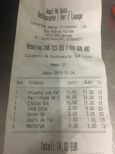 Read moreFood was okay. But just okay. Parrilhada de carne, all cheap cuts of meat. Over cooked. Fries were good. Waitress said it was served with veggies, but had to remind them after the food was already served... No one came during the meal to see how things were. Tables left and no one attempted to pick up dirty dishes, half hour later they were still on the table. 2€ for soft drinks. Almost 4€ for soup. Super overpriced and under delivered. Kids chairs were the clip on kind that always make me nervous and fabric was super dirty. 4 people, 2 food dishes, bread, and...
