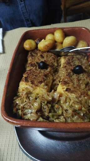 Read moreAlgo difícil de encontrar ya que está en un bajo de una vivienda junto a una gasolinera bajando por una rampa. No sabíamos si estaba abierta o no hasta llegar a la misma puerta. Poco aparcamiento. Lugar sencillo y sin lujos. Comida rica y todo correcto. La camarera nos recomendó pedir menos raciones y si queríamos repetir más tarde. Tardaron un poco en servir, tal vez por lo qué pedimos y necesitaba tiempo de elaboración. El pan y aceitunas no los pedimos pero nos trajeron y luego nos cobraron. Eso no deberian de hacer. O no cobrar o no traer si no lo hemos pedido. Comimos media ración de bacalao de la casa y medio de mixto de grill, una tarta de queso (industrial y congelada) y una botella de vino blanco. Pagamos 40,10€ todo, pero no puedo enseñar ticket ya que no nos dieron. Todo rico y...
