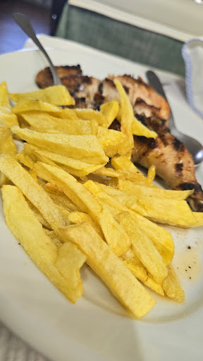 Pedimos dois bifes de vitela, deveríamos ter calculado que algo estava mal, pois não nos foi questionado o ponto da carne, no entanto, mais mal ou bem passado algo se deveria comer, até porque nos deram 3 facas a cada um para cortar a carne, o que me leva a pensar que é para o mal, médio e bem passado. O empratamento não passava de um prato oval, com a carne no meio, um pouco de arroz (puré) do lado esquerdo e batatas banhadas a óleo do lado direito. O sabor da carne deixava muito a desejar, não sei se por ter estado congelada ou por algo, sei que tinha um sabor muito estranho, tendo a minha esposa deixado mais de metade do bife no prato. O restaurante mostrou muita desorganização, começando no atendimento da chamada, à receção dos pedidos e a confecção dos pratos na cozinha, até mesmo como referido na entrega dos talheres. De salientar que os pratos depois de convencionados ficam a fazer equilibro num mureto junto ao balcão onde as pessoas passam e se encontram a falar, sendo posteriormente (quando vistos) recolhidos e entregues por quem está a servir à mesa. Durante este tempo estão expostos ao clima da sala e seu clientes, desprotegidos de espirros, perdigotos, cabelos ou poeira (o restaurante deverá pensar numa solução).