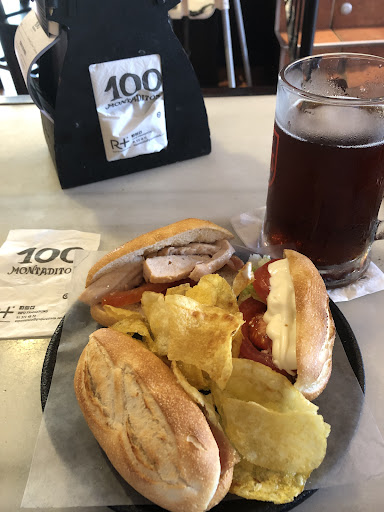 It’s a counter service restaurant, and you’re given a beeper that goes off when your order is ready to pick up. My order of 3 Montaditos came with a handful of potato chips. I ordered a £2 mug of cold beer to go with my lunch. Everything tasted fresh and delicious. I was in and out in about 20 minutes. You can’t go wrong with 100 Montaditos, and it’s always fun to try the seemingly endless variety...