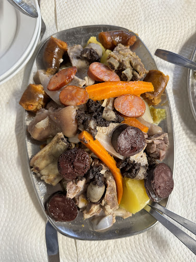 Read morefizemos uma reserva para um almoço para celebração de 3 aniversários para 32 pessoas que nos foi fornecido um menú da qual constava entradas ( salgados, azeitonas,manteiga,presunto e queijo) e como prato bacalhau com natas e carne de porco assada com batatas. Havendo 2 pessoas que não gostam de bacalhau com natas, pedimos ao funcionário uma alternativa, ao que ele se prontificou a fazer. Para nosso espanto regressou e diz não terem bacalhau (quando na sala do restaurante na lista apresentada constava bacalhau). respondeu-nos, comam a carne!. Chamei a atenção que, ao contrário do que foi contratado, não foi servido nem presunto nem queijo, pelo que nos serviu um pequeno prato com 6 fatias de presunto e um queijo (para 32 pessoas? aliás nas restantes entradas foi a mesma coisa. Salgados??? creio que nem deu para ser 1 por pessoa, 1 duzia de pacotinhos de manteiga.... ( a carne estava bem confecionada) para terminar , as sobremesas vinham congeladas, ao que o funcionário respondeu daqui a pouco já está bom... conclusão: experiência MUITO NEGATIVA, 10€ por pessoa já era caro, agora 20€ ( que foi o que pagamos para a qualidade da confeção e o do serviço, não digo que fosse caro FOI EXORBITANTE Não aconselho dou uma estrela na classificação porque não tenho...
