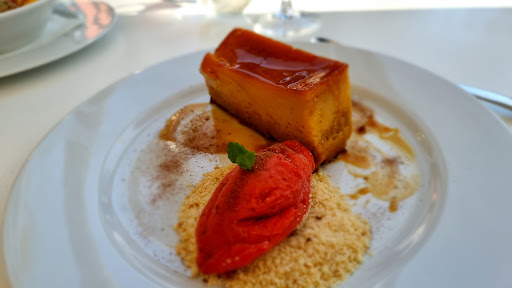 Das Restaurant mit wunderschöner Terrasse und Traumaussicht in den Pinienwald gehört zum Sheraton Hotel. Dort wird neben Luch und Dinner auch das Frühstück für Hotelgäste angeboten. Wir mußten aufgrund der Lockdown-Restriktionen an den Weihnachts- und Silvesterfeiertagen häufiger als geplant im Glass Terrace essen. Dabei haben wir die ganze Bandbreite der von Bruno Oliveira geleiteten Küche kennen gelernt. Nach einem sehr gut organisierten 4-Gang-Weihnachtsmenue am Heiligen Abend und einem kreativen 5-Gang-Menue inklusive Weinbegleitung am Silvesterabend konnten wir auch das kleine feine à la Carte Angebot ausprobieren. Das servierte Menue an den Tischen des Restaurants war die gesetzlich zugelassene Alternative zu einer ursprünglich geplanten rauschenden Silvester-Gala mit Live-Musik, Tanz und Buffet. Die Dekoration im Restaurant, das Platz für ca. 50 Personen bietet, war festlich und wir fühlten uns sicher und gut aufgehoben, weil sämtliche coronabedingten Hygienevorschriften peinlich genau eingehalten wurden. Die Qualität und Zubereitung der servierten Speisen war überzeugend und dazu eine logistische Meisterleistung. Auch bei den "normalen" Restaurant-Besuchen konnte uns Bruno Oliveira mit seinen kreativ zubereiteten aromatischen Gerichten überzeugen. Besonders die wunderbaren Saucen und seine individuelle Interpretation des Klassikers "Patatas Bravas" bleiben uns in Erinnerung. Zum gehobenen Küchen-Niveau des Restaurants passt der freundliche und außergewöhnliche Service: Sofia machte die Abende an den Feiertagen zu einem echten Wohlfühl-Erlebnis. Auch ihre Kollegen Nono und Sumon überzeugten mit ihrer Aufmerksamkeit: Schon nach wenigen Tagen kannten sie beim Frühstück unsere bevorzugten Heißgetränke und Eierspeisen. Auch Sonderwünsche beim Buffetangebot wurden flink und freundlich erfüllt. Wir haben uns trotz Corona-Auflagen im Glass Terrace jederzeit sehr wohl und...