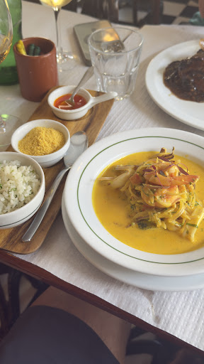 Read moreThis little neighborhood golden gem was a couple of blocks from our Cascais VRBO. We walked past a number of times but finally stopped in one night. So glad we did. Even though we didnât have a reservation and the place was almost full, the manager gladly seated us. The combo of Brazilian & Portuguese food was really nice. We had the pear, goat cheese salad and crispy shrimp⊠both were delicious & beautifully presented. We loved the ambiance⊠instrumental jazz. The whimsical tablecloth drawings framed on the wall were cute. Thanks again to the manager for...