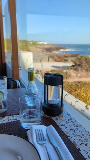 Had heard great things, therefore and to be fair to the place, expectations were high. The venue is beautifully decorated, it probably has the best decor of all existing restaurants in estrada do Guincho (which I guess is to be expected given that they're the most recently open). Most of my remarks on the place are done with a benchmark against these other restaurants in mind. The location is fabulous, but in Furnas you will find yourself feeling closer to the ocean (and, if I recall correctly, more sheltered from the wind). We only have good things to say about the staff, from the hostess to the waitress we got, they all were phenomenal and as we visited with a stroller, they were very accommodating in letting us choose the most convenient table for our setup. We ordered 3 starters, 1 main and 1 dessert and this is I guess where the restaurant fell short of my expectations. I've visited a few restaurants of José Avillez and have had mostly outstanding experiences but this one fell short vs. neighboring restaurants and the prices charges. The croquettes and garlic prawns were ok - not memorable. The fried eggs with steak sauce was delicious but the toast that came with it was so burnt and hard, almost impossible to break into pieces, therefore impossible to dip in the sauce. The octopus we got for main was phenomenally cooked, zero complaints. But then again, the toucinho do céu for dessert was not super impressive. These along with a couple of glasses of wine, a gin and one cider came to about €70 per person. Reasonable given the scenery but I would not say the food was worth this. One thing that upset me and that i've seen trending in Portugal lately is for the total in the bill to include the suggested tip. We almost tipped on top of the amount called out as total, despite it already incorporating a tip. It's truly misleading and dishonest. The suggested tip should come after the bill total, and never incorporated. I don't think the staff is to blame for this, but I find...
