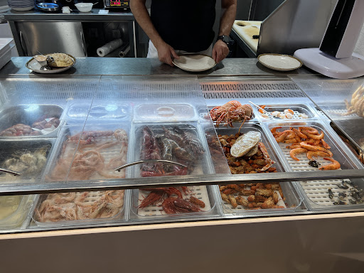 Bad: It went downhill after we sat down at the table. -Staff was disinterested and rude from the start -Our 1 dozen oysters meat was NOT cut from the shell and had lots of shells. I understand a little shell is expected sometimes but to charge 17,50 euros for 6 with this experience is terrible. See photo. -Octopus was extremely salty where we had to down 2 large bottles of water. Lemon juice only helped a tiny bit. -Fried hike was extremely salty too, even taking the fried skin off -Staff never asked us for drinks and when we raised our hands to ask for water, they made humorous actions to mock me. I wanted to take it as humor but it was uncalled for from how we've been treated -Waiter never asked how our food was -Waiter offered the table next to us a stand for their hats and purse but never offered us even though we came first. We had 2 hats, a shopping bag, and 2 purses -We asked the waiter for the check and asked if we pay at the table or in the front and he rudely said the table duh -Shrimp rice tasted like seafood rice with actual rice grains like the appetizer. Fortunately, it tasted fine and not overly salty like the other...