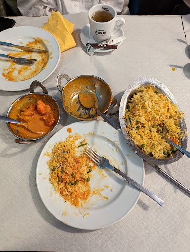 Read moreNuma das vezes, chegámos ao restaurante às 20:15, 4 pessoas. Havia algumas mesas livres, mas o dono pediu que esperássemos enquanto preparava a mesa. Saímos e quando eventualmente voltámos a entrar, o dono dirigiu-se a nós como se fosse a primeira vez que falava connosco. Acabámos por nos sentar e esperámos mais de 10 minutos até que nos viessem trazer 1 só menu, e mais 15 minutos até que viessem registar o pedido. Havia mais 5 ou 6 mesas ocupadas, uma delas com cerca de 15 pessoas, que acabaram por se levantar e ir embora porque estariam, supostamente, à espera das entradas há meia hora. O serviço no restaurante estava muito lento, casa cheia e só o dono e um funcionário a atender, mas continuavam a preparar comida para entregas…. O atendimento é simpático mas muito confuso e pouco eficiente. Enganaram-se num dos pratos, foi preciso pedir as mesmas coisas várias vezes… Em relação à qualidade da comida: O Til Naan não é nada de especial; O Mango Lassi (Batido de Manga) é muito bom, e bem servido; Das duas últimas vezes que fui, pedi Prawns Korma. Da primeira, achei fraquinho: o molho estava muito bom, mas os camarões pareciam mal cozinhados, e tinham um aftertaste desagradável. Eram 9 camarões pequenos e molho, não vale os 11€. Da última vez, soube-me bem, mas tinha ainda menos camarões (8). Acompanhei com Yellow Rice, que achei insonso. A Mousse de Manga é muito boa, mas o Gelado de Coco é sensacional, imperdível. O menu é bem apresentado, e os pratos são bem explicados, o que nem sempre acontece noutros restaurantes. A casa de banho não está bem...