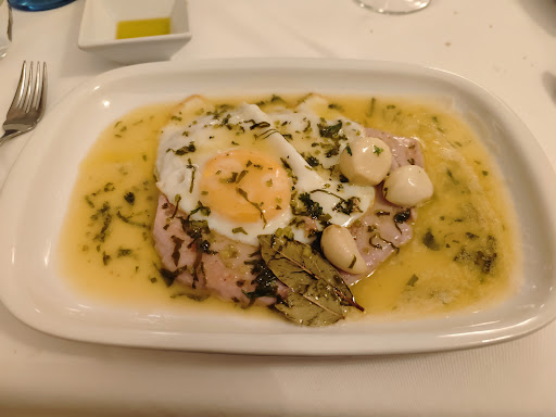 Read moreWe went primarily based on recommendation of our VRBO hostess. On-line reservation was easy; 7pm, pretty much only patrons at this early hour (for PT). Service was excellent, waitress was very attentive and spoke English well. She made recommendations (at our request), and definitely wasn't pushy about inflating the check. We had their Steak Pereira (with a Madeira wine sauce) and the Cod with Rice dish. Both came with a fried egg on top, and the steak came with fries. The steak was tasty although it didn't seem to be grilled at all (which would be my preference); fries were OK. The cod dish was good and generously sized, although it was 'soupier' than I expected and could have used more seasonings (and there was no salt/pepper on the tables). We wound up taking some of that home. Again based on a couple recommendations, we had the Doce da Casa, a creamy dessert with tons of cinnamon and topped with almond shavings. We never had anything like that, and highly recommend it (if you love cinnamon). Pricing was reasonable, esp. for Cascais. The restaurant was just a bit off of the beaten path, not far from the busy tourist area. Decor was very nice and contemporary. We were a bit disappointed that even though it was pleasantly cool outside, the interior was kind of stuffy and no outdoor dining options...