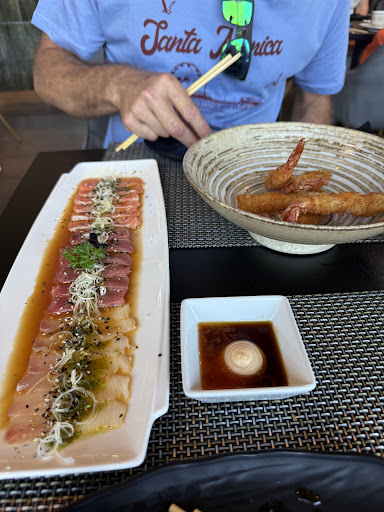 Spoiler alert – This is a dam good sushi joint! We took the couvert which is chunks of spiced salmon over a crispy nori cracker (sorry, Susan, this is definitely finger food). Also, the Sunomono cucumber salad was so good we ordered the larger portion (don’t be put off by the English menu description “dehydrated” cucumbers. It seems to be a classic Kyurimomi rendition where the cucumbers are thinly sliced, salted, drained, and dried between clean towels before saucing.) Our other starters were chicken Goyza - crispy fried! and vegi Tempura which was a mix of vegies with a perfect light tempura batter – the best we have had in Cascais. For mains we had tuna Sashimi – beautiful large pieces of tuna with a light dipping sauce. Followed by the California Roll Uramaki - as good as any we had in Berkeley California where we lived before moving to Cascais. For dessert, we went back to the starter menu for the Hot Fry Special – one of the chef’s fusion offerings. Brilliant! A Uramaki roll wrapped in salmon then fried like tempura. In addition to the simple but cozy ambiance, the attentive and knowledgeable staff, and the brilliant chef, I think their secret is keeping the menu simple focusing on the just classic Sushi dishes with a few special offerings from the chef. If you want Pad Thai go elsewhere. We will be back, often, to sample the rest of the menu! Parking. Well, if you don’t shop at Pingo Doce it takes some getting used to. The entry off Av. Nossa Str. do Rossario is what looks like a wide cobblestone walkway but turns out it is a two-way road. Sharp left into underground parking can be hazardous. The delivery trucks “share” the same route – hopefully you don’t meet any. Hint: go all the way down to the bottom level for ease of entrance and more...