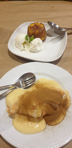 The food was Divine. We dont eat seafood so cannot say how those dishes were but the lamb chops and pork cheeks were delicious. We also got the shared meat platter, but I think the separate mains are a better option for more traditional and tasty options. We also had bread and olives as a starter. The bread is delicious and served hot. We also tried the custard meringue and apple strudel (not as good as the pumpkin fondant).