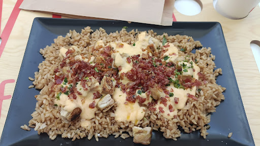 Read moreFoi a primeira e última vez neste conceito de restaurante, única coisa boa foi o atendimento, são bastante simpáticos e atenciosos. Quando a comida, pedi uma virada de queijo e bacon, imaginei que fosse gostar bastante, pois escolhi uma combinação que adoro… (frango, arroz, queijo e bacon) não tinha como dar errado e que decepção! O arroz extremamente salgado, rijo e queimado, o frango estava seco parecia que já havia sido aquecido várias vezes, o bacon completamente queimado e umas batatas de pacote. O dinheiro mais mal gasto de sempre, ainda disse a mim mesma que ia comer pois não gosto de estragar comida, mas foi impossível,...