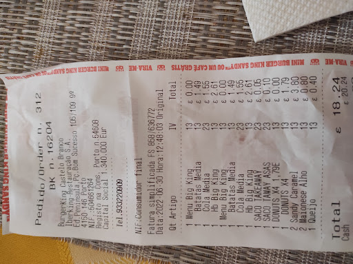 Read moreThere is no employee who speaks English. Even though I said I did not speak English, they tried to speak Portuguese to me, but they were not helpful at all. They served my 10 euro menu at 10.30 without my knowledge. When I asked why, they said something in Portuguese again and the woman at the cash register took the card in my hand and made it read to the POS device, yes, she really did something like that... And then they added extra ketchup for no reason and I paid extra money just for that. I wanted a meat burger menu and when I got home and opened it, I realized that they gave me a completely different menu. I paid for a completely different menu with bread/meat/ingredients.