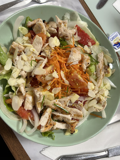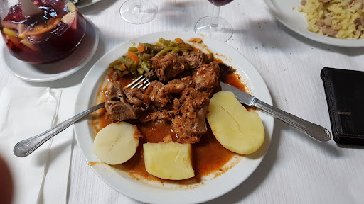 Read moreWe called into this restaurant on our way back from the Lagar to celebrate a good olive harvest. The restaurant is at the back of the cafe, nicely lit and clean. We ordered the soup of carrot strips which was quite tasty with nice soft bread, then fried chicken escalopes, which were succulent and served with crisps, 1 bowl between 3 people, I hate it when I see these, crisps are a shortcut and cost saving thing instead of chips, and are not filling. The meal wasn't accompanied by salad or vegetables, nor the usual boiled rice, so I then ordered a small salad to bring flavour and colour to the meal. We had a carafe of house red wine, which was good. We followed the meal by having 3 different deserts, which were fairly standard, usual Portuguese sweets that look good but sadly always seem to lack any levels of flavour, other than sweet. We didn't opt for coffee. The meal cost 53 euros, 17.50 euros each, which I felt was overpriced for what was nothing more than a standard lunchtime Prata de Dia at normally 12 euros each and including coffee. The waiting staff were polite and helpful. Not somewhere worth rushing...