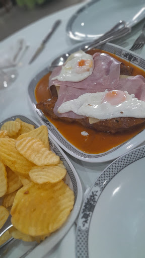 Simply crazy. We (2 brothers) ordered the Bife à bem-estar, like everyone recommends (25€). The waitress mentioned it is a dish for two. It is basically 2 large beef steaks, just under 300g each (we asked), topped with egg, ham and melted cheese, all bathed in secret mustard sauce. It was delicious and juicy. The meat is accompanied by large plates of fries and rice, both obviously great as well. We asked Marianna our waitress for a salad (doesn't appear in the menu) to add some freshness, and she brought a hefty plate of fresh lettuce, onion and tomato in vinaigrette for a mere 3,50€. The only thing we weren't admiring was the atmosphere - an old-school family restaurant with a TV on the wall - but that's because we have to complain about something... Ended up taking a picture with the ever-smiling owner, Urbano, to cherish the experience....