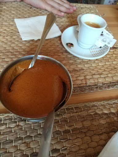 Depois dos tais pratos típicos que não haviam tive que escolher outra opção, no caso sopa de tomate que me disseram vir acompanhada de uns carapaus fritos o que me pareceu uma boa solução.