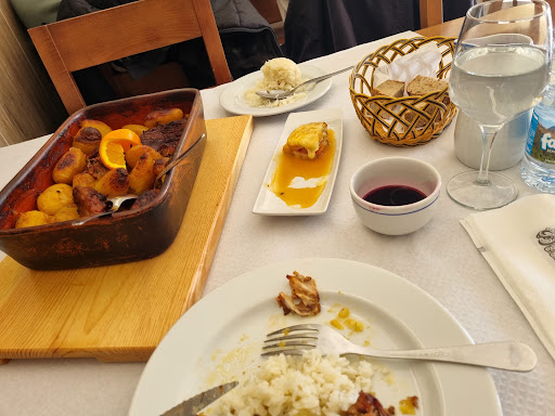 Read moreAltamente recomendável para quem gosta de comer bem em ambiente familiar com comida que parece feita pela nossa avó. Comemos uma tábua de entradas variadas, patê de atum azeitonas e tostas e uma tostaa com pimento e iscas de bacalhau divinas. Ainda fomos a tempo de comer uma excelente dose de vitela assada tenra saborosa e acompanhada de umas maravilhosas batatas assadas bem tostadinhas. Para empurrar foi um óptimo verde branco da casa, daquele que parece espumante. Por fim e como surpresa pedimos o bolo de bolacha, altamente diferenciado dos habituais bolos de bolacha, este com uma cobertura de côco deliciosa. A menina que nos serviu extremamente simpática e prestável e fez questão em nos apresentar o patrão e cozinheiro, o mestre por trás desta experiência gastronómica espectacular. Voltaremos lá de propósito da Trofa para Celorico para provar o cabrito e novas entradas e sobremesas. Altamente...