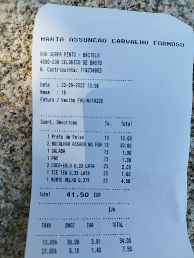 Slightly more expensive than in smaller towns, typical meat options (fish, chicken, pork or beef). They don't speak English but you can order with the simple name of the meat in Portuguese (peixe, frango etc.) Comes with rice, potatoes and you can ask for salad. Typical drink options, local wines and Super Bock for beer. No wait and clean friendly environment. Dedicated WC on first floor...