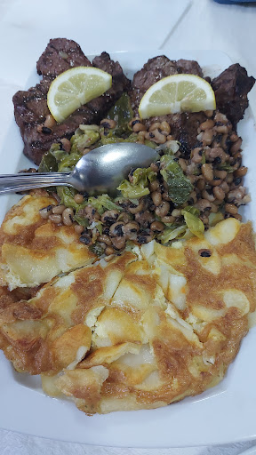 Read moreLa chica que nos atendió fue muy amable, de hecho nos recomendó dos medias raciones, bacalao a brasa y vitela al horno, y yo no le hice caso y pedí una de bacalao y media de vitela Pero es que el bacalao venía con patatas a la brasa pimiento y grelo. La vitela con patatas fritas ensalada y arroz Y después los postres, mi marido es celiaco y es la primera vez que encontramos un sitio que se entera de lo que es eso Hasta tuvo postre para el, un sorbete de mango richisimo, y yo me tomé una torrija con helado, que me recomendó la chica. Bebimos una botella grande de agua y no llegamos a los cincuenta euros. Volveremos y pediremos...