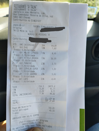 Read moreDe visita a Chaves escolhemos este restaurante para almoçamos, sendo 4 adultos e 3 crianças. Entradas puseram melão com presunto, e pedimos para almoçar, bifinhos com cogumelos que estariam bons não fosse a comida fria que nos foi servida,doses que nao sao assim tao bem servidas e, simceramente para o qie puseram na mesa, achamos caro. Como crianças k são, gostam de brincar e sem querem puxaram uma das toalhas que estavam numa mesa que não tinha rigorosamente nada em cima. O patrão teve a pior reação que poderia ter tido quando as mesmas crianças que sem querer tiraram a toalha estavam a pôr ao sitio, de uma arrogância extrema para com as mesmas mesmo nos justificando o sucessivo. Conclusão, levantamo-nos e viemos embora sem pedir mais rigorosamente nada, enquanto fizemos o pagamento tentou dar uma justificação, não sendo a mesma convincente. Dias maus todos temos mas, não tem que descontar em quem vai lá dar o dinheiro para manter a casa aberta. Certente um sitio que...