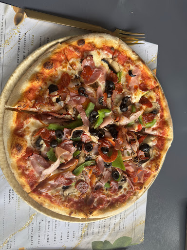 The vegetarian pizza (€20/2) had just an average crust but the selection of vegetable on top was pretty good: red and green peppers, zucchini, mushrooms, eggplant, tomatoes, broccoli and probably more that I’ve forgot. Not at all a traditional pizza but tasty. Very good friendly service....