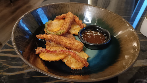 Read moreSchickes Restaurant zwischen dem Castelo und dem Tabolado Park. Hat einen großen Innenhof mit vielen Sitzgelegenheiten im Freien. Die Speisekarte ist kurz und aufgrund der fehlenden Beschreibungen der Gerichte bestellt man entweder auf gut Glück oder muss Details zu jedem Gericht erfragen. Wir haben beispielsweise etwas nachbestellt und nicht bemerkt, dass wir etwas falsches (teureres) bekommen hatten bis der Kellner uns darauf hingewiesen hatte. Fairerweise haben wir auch nur den Preis des bestellten, günstigeren Gerichts in Rechnung gestellt bekommen. Das Essen ist eine fancy Interpretation von Sushi, d.h. die typischen Komponenten wie Maki und Nigiri aber mit Soßen, Mayo, Frischkäse usw. drauf oder frittiert. Das Sashimi konnte mit Frischen und viel Abwechslung der Fischsorten überzeugen. Wer aber klassisches Sushi ohne Geschmacksverirrungen wie Mayo oder Frischkäse sucht, wird hier eher nicht fündig. Der Aperol Spritz war anständig gemixt. Das Personal ist in den Sommerferien mit temporären Mitarbeitern verstärkt, die zeitweise etwas verloren und überfordert wirken. Es arbeiten hier aber auch sehr kompetente und umsichtige Profi-Kellner. Wer eher einen schicken Laden sucht, um vor besonderer Kulisse Cocktails zu trinken, aufwendig arrangierte Sushi Platten zu essen und auf Instagram Fotos davon zu posten, ist...