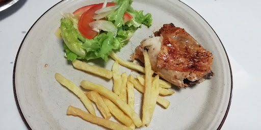 Only two choices; chicken or fried filets of fish. The chicken served with chips and rice and the fish served with their version of Russian Salad, which was nothing like and consisted of boiled potatoes and three vegetables. With a charcoal grill up and running in the adjoining take away, I would have expected a wider choice of meals. Only 3 stars because of this and the distinctly frosty attitude of...
