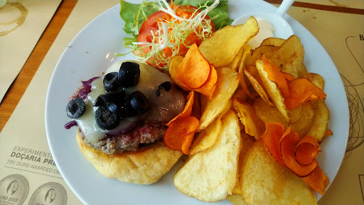 Read moreThis is a lovely little restaurant just behind the second roundabout after crossing Santa Clara bridge. It is easy to spot thanks to its deep pink colour and we'll worth a visit. Although the menu is predominantly hamburgers there is a decent range of other things, petiscos, carne and peixe all feature in a menu separate from the burgers. We had a beef and a chicken burger, both with imaginative toppings and a side of tasty crisps. The request to serve the beef burger without the listed pineapple wasn't a problem. Service good, desserts looked delicious but we didn't have time / room to sample. Good value for a more upmarket spot. Will definitely be back to try...