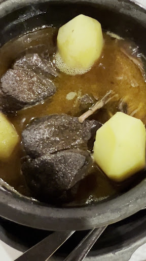 We ordered the chanfana (goat stew) and the calamari and prawn skewers. Both were very good, and HUGE portions. We also got a bottle of the house red wine, and it was quite good for the price (looking around, EVERY table was drinking either the white or red house wines... just too good of a value!)