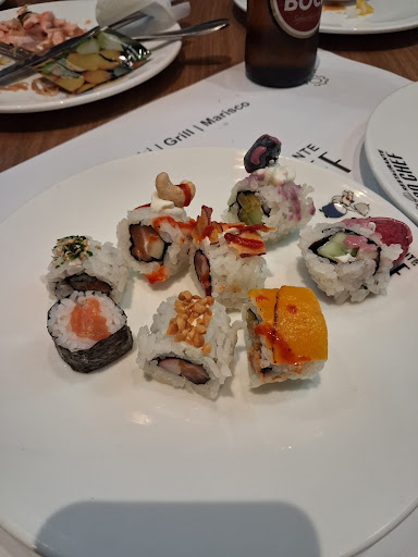Excellent variety of food. However, quality seems to have not been considered. Several options of sushi, mediocre quality. Nori soggy and not crispy. The grilled food takes too long to arrive and comes dry and overcooked. Desserts are a sorry copy, with most being instant supermarket variety cheaper brands. As for the service, staff doesn’t speak Portuguese and barely understands English… they are friendly and willing but the communication barriers huge. The ambience is amazing. Everything well placed with booths for reserved groups. Very nice indeed.