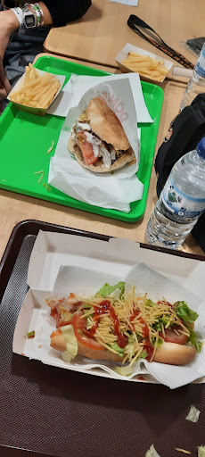 We went to ask for a takeaway. We took kebab. The kebab was warm, thin flakes, not very fatty. The pita bread and the durum bread were heated up before serving. Everything was wrapped in an aluminum foil and preserved its heat. It is served with: Aioly, ketchup and maionese. Tomatoes, onion, cabbage, ground carrots, maze, green onion rings, farfale, and thin French fries. We also took a falafel box. The falafel was fried together with more coarse French fries. Both were good although the falafel felt a bit too oily, suggesting the oil temperature was not perfect. 3 servings cost us 15.5€. There were some tables outside on the street, but it's on the main road, not...