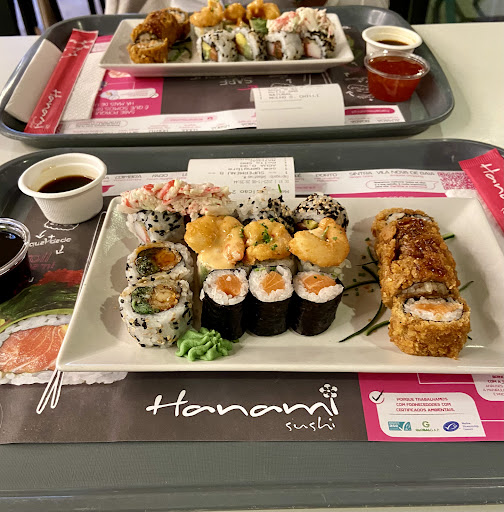Read moreCoimbra. Sushi bom como sempre foi hábito. Atendimento muito lento (quase 50min), empregadas de balcão completamente desorganizadas a enviarem pedidos para trás e para a frente. Chamaram o meu pedido sem sequer estar pronto e deram o errado (se eu nao dissesse que nao era claro) e para meu espanto as peças hoje vinham com um especie de areia. Nao sei se era das algas ou camarão mas as peças que tinham camarão vinham com uma areia que fazia os dentes rilhar Fiquei completamente estupfacta, nunca me tinha acontecido e sou cliente assídua. So nao dou uma estrela porque ja provei hanami em varios pontos e realmente é bom, mas esta foi uma experiência bastante desagradável.