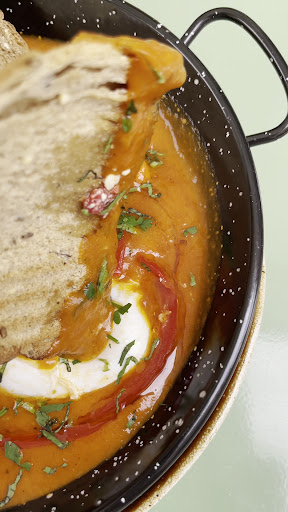 Now, about that 'Shakuska' adventure - eggs on point, partnered with toast and vegan feta. But hold up, the base sauce? It took a detour into creamy soup territory. No Shakshuka vibes here, folks. 🍅