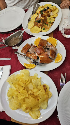 We came for lunch after the proposition of a friend. Had suckling piglet with fries and friends had homemade bacalao with mayonnaise in the oven with potatoes and salad. We also ordered the house wine (bottle). Overall the suckling piglet is good, but not my favorite from the area. The bacalao was good as well but nothing extraordinary. 4 stars because we ordered more potatoes and they came undercooked/raw and the people working there didn't really help with ordering a digestive drink (options etc). Also when we said the fries were not cooked, they just said "what can we do now it's too late". But a positive note to the waiter who said that we shouldn't order two portions of bacalao as it would have been too much. No food waisted! Thank you! Overall the price and quality is not bad, but I do not think we...