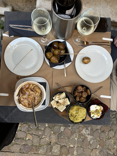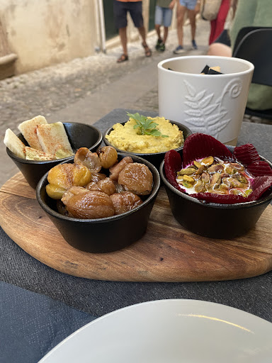 Read moreWell that was a very odd meal. I ordered the “degustation” and it ended up being one kind of cheese, hummus, beets in watery yogurt (with pistachios) and roasted chestnuts. It seemed very unbalanced (very oily and rich, nothing fresh, light or even green!) and kind of thoughtless - how are you supposed to get the yogurt out of the cup if you don’t get a spoon, and why does the hummus not come with bread? Look at my picture - in the dish with the beets, it’s pure liquid from the white stuff down. How do the staff here think you’ll eat that?! I ended up ordering a bread basket so I’d have something to put the hummus on, and to soak up the yogurt from the beets, and I’m not joking when I say I thought they charged me €2 for two TINY slices of plain white bread. Basically two slices of baguette (each cut in half to make four pieces, but still only two tiny, thin slices)… but then in the end it wasn’t on my bill. So I don’t know if that was the €2 bread basket and they didn’t charge me for it or if that was the free bread everyone should have got and they forgot my bread basket. I was at a table on the sidewalk so I basically didn’t get any service, so I can’t speak to that element of the meal. Overall I would say it was overpriced and...