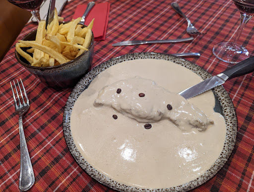 Read morePLEASE READ THE ENTIRE REVIEW An odd and bad experience at the same time. We stumbled across this place and thought we'd give it a try. The food was OK. We tried two of their specials. But as we were eating, a fado band came in to set up. That would be fine except that right in the middle of ordering dessert, or server said the live music was starting and just disappeared...never finishing taking our dessert order. Then, when there was a small break in the music we got up and went and asked for our bill. When we tried to pay, they told us that we had to pay cash (we knew we didn't have enough) or use a Portuguese credit card. No foreign credit cards. Had we known that we would not have dined there. They were rude about it, sent us to a "bank" to get cash which was a seedy ATM machine across the street. We tried it but don't have PINs for our cards. We went back and gave them what we had (trying to do the right thing) which was close. DO NOT GO THERE IF YOU DONT HAVE CASH OR LOCAL...