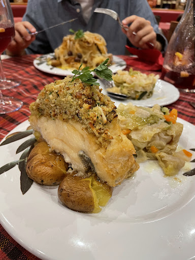 Very well located in Coimbra's downtown, this is definitely a go to place if you're looking for an authentic Portuguese restaurant experience, both in terms of food and atmosphere. You will find some of the best local delicacies and won't leave hungry for sure. Do yourself a favour and ask for a couple of starters, especially the Alheira à Brás. The downsides really are the prices which are sadly over inflated and tourist driven, so you won't see many locals here due to that, so I can't say the prices match the quality of the food, and that's the most important part for me. Another downside, unfortunately I should add, was the service; while it was great in all senses, very quick and they knew very well their menu items and wine pairing, we were being constantly interrupted (albeit very kindly so) in the middle of conversation to the point we would loose track of what we were talking about. I understand some guests appreciate this, but in my case I prefer a toned down approach, some help deciding at the beginning, and a bit of chat at the end about how it all went. All in all, it was a good experience, but I'm not sure I'll...